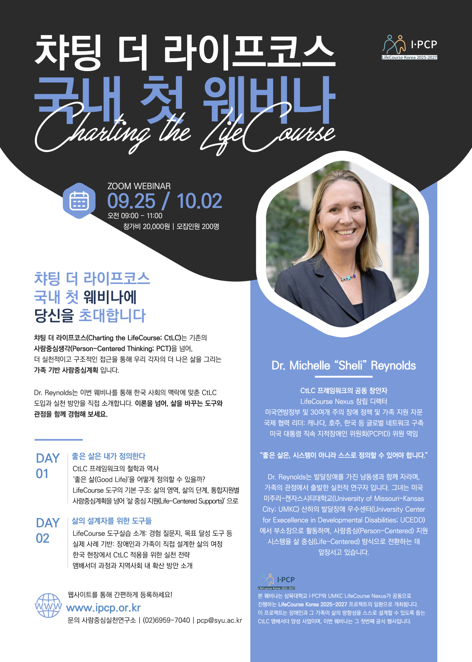 국내 최초 공식 Charting the LifeCourse 웨비나! 2025년 9월 25일 & 10월 2일, ZOOM 온라인 실시간 진행. Dr. Sheli Reynolds와 함께 ‘좋은 삶’을 설계하는 철학과 실전 도구를 배웁니다. 자료집·수료증 제공, 선착순 200명 모집.